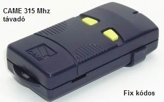 CAME távadó. Fix kódos. 1024 kód kombináció. Sárga gombjai jelzik, hogy 315 Mhz. működik. Gombnyomáskor zümmögő hangot ad. Kifutott model. Kiváltható, pótolható TOP 312 NA