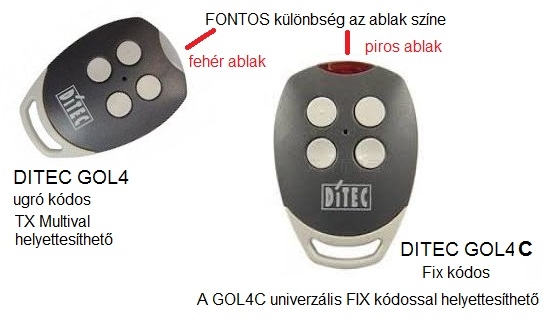 DITEC GOL4 ugrókódos, Kiváltható, pótolható univerzális távirányítóval. Típusa: GATE MGV2 vagy TX MULTI DITEC GOL4 C Kiváltható, pótolható univerzális FIX kódos távirányítóval.